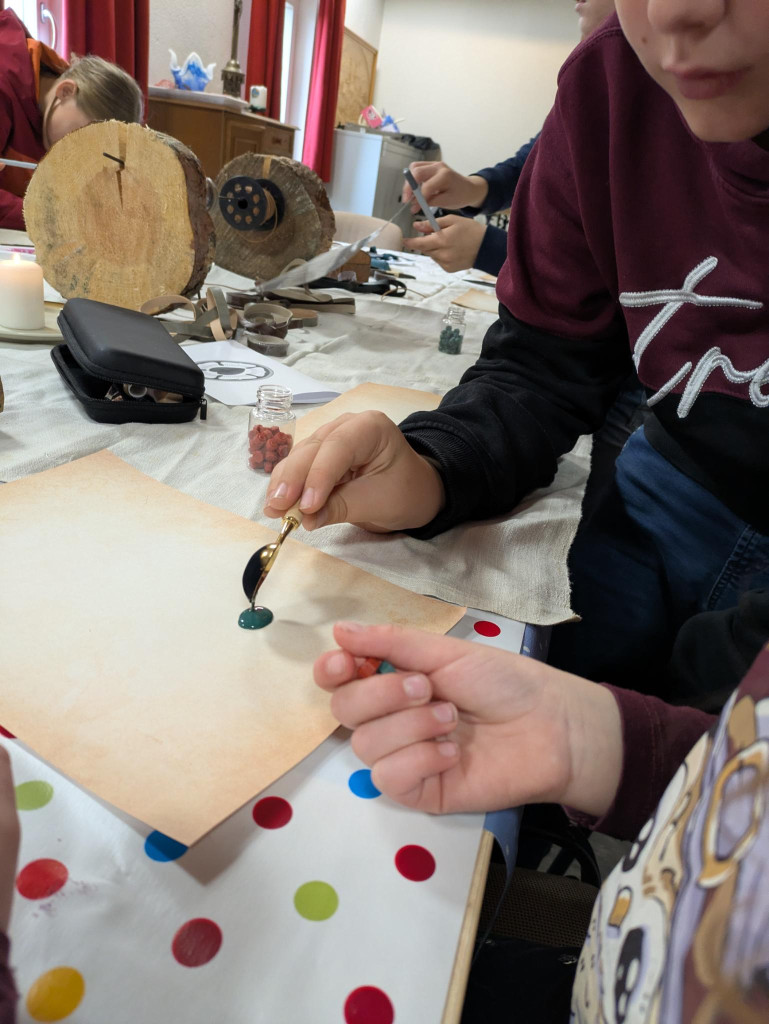 Wer ist schon einmal für einen Tag ins Mittelalter gereist? Die Kids haben dies im Kindergottesdienst am 19. Oktober getan, denn bis zum Reformationstag ist es nicht mehr lange. Abenteuergeschichten aus Martin Luthers spannenden Leben wurden erzählt, denn in Luthers Zeiten ging es rund in unserer Kirche. Das Besondere an diesem Kindergottesdienst war, dass die Kinder echte Siegel herstellen konnten, die die Briefe in der damaligen Zeit sicherten. So wurde Wachs gegossen und geprägt. Sogar die Ehrenamtlichen im KiGo-Team kamen in mittelalterlicher Kerkleidung und es war ein tolles Erlebnis, das niemand so schnell vergisst.